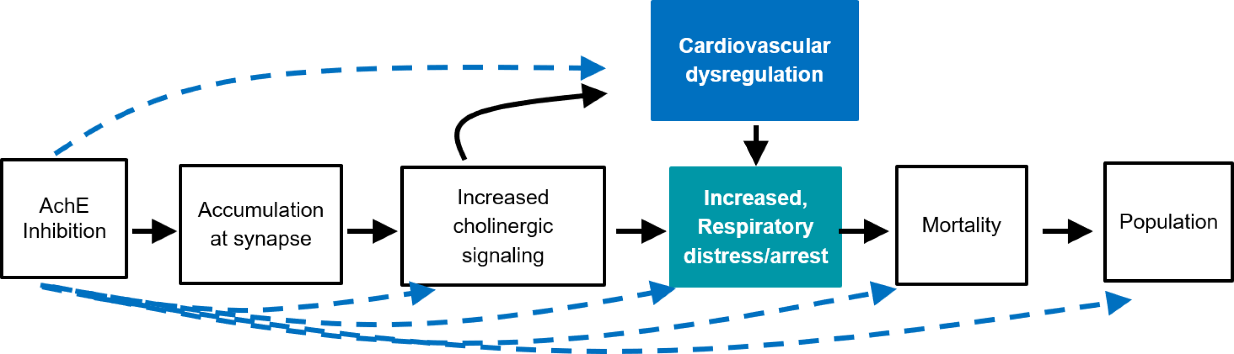 | AchE Inhibition leads to Increased Mortality | non-adjacent | High | Moderate |