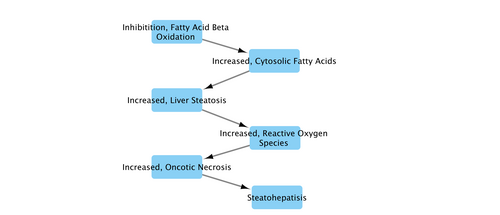 Based on information available in (2-3) it is possible to estimate the amount of fatty acid beta-oxidation inhibition that is required to lead to steatosis. The quantitative evidence for the steps leading from steatosis to hepatitis are relatively weak. This process is not entirely well-known at the granular, molecular level, and there is a derth of quantitative studies at this time.