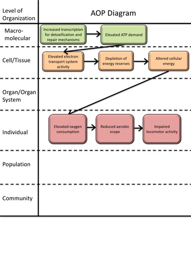The oxygen demand needed to facilitate elevated macromolecule catabolism and oxidative phosphorylation at the cellular level may alter energy allocation at the whole-organism level, causing impaired locomotor performance. For instance, contaminants that elevate oxygen demand for basal metabolism may reduce an organism's aerobic scope (i.e., [maximum metabolic rate - basal metabolic rate]) and reduced aerobic can impair locomotor performance.