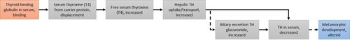 | T4 in serum, Decreased leads to Altered, Amphibian metamorphosis | non-adjacent | High | High |