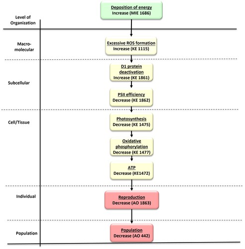 Quantitative data were generated in studies with Lemna minor and the freshwater algae Chlamydomonas reinhardtii exposed to external gamma radiation from a Cobalt-60 source and artifical ultraviolet B radiation (UVB). The quantitative understanding of the AOP was therefore considered to be Moderate for these species and stressors.