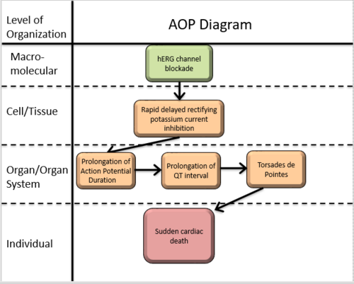 The AOP may be useful in the risk assessment on several types molecules including drugs, as well as other types of chemicals, biocides, or pesticides. This AOP elucidating the pathway from hERG blockade to sudden cardiac death may provide important insights into the potential toxicity of direct and/or indirect hERG inhibitors.