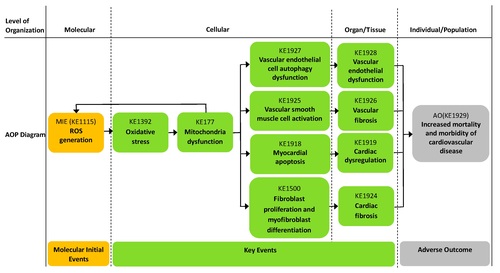 A graphical representation of the AOP.This graphic should list all KEs in sequence, including the MIE (if known) and AO, and the pair-wise relationships (links or KERs) between those KEs.