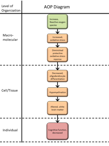 A graphical representation of the AOP.This graphic should list all KEs in sequence, including the MIE (if known) and AO, and the pair-wise relationships (links or KERs) between those KEs.