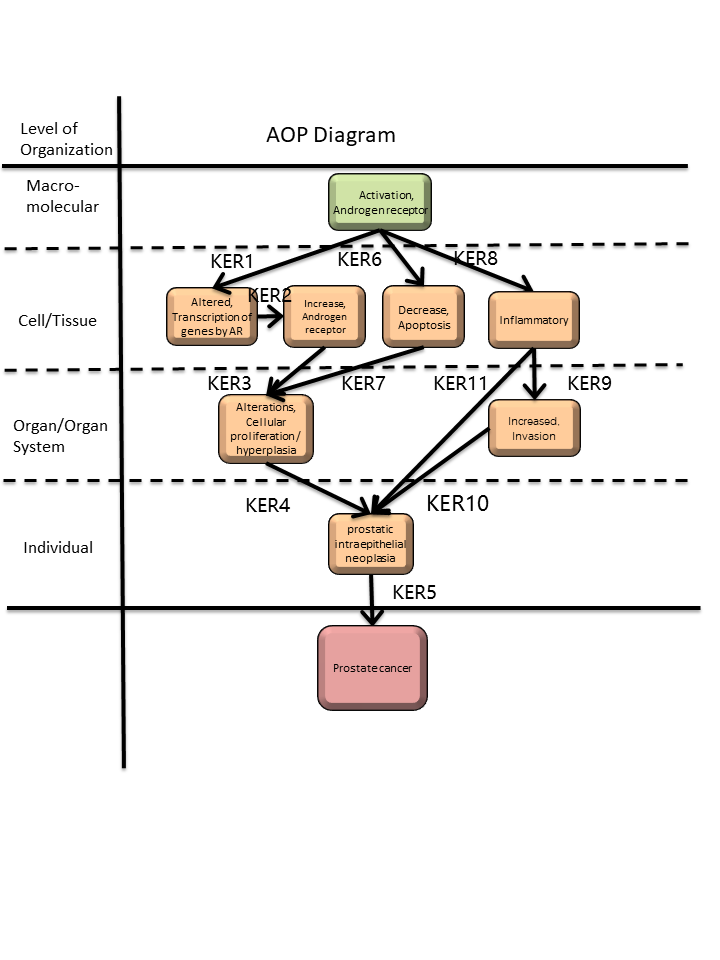 A graphical representation of the AOP.This graphic should list all KEs in sequence, including the MIE (if known) and AO, and the pair-wise relationships (links or KERs) between those KEs.
