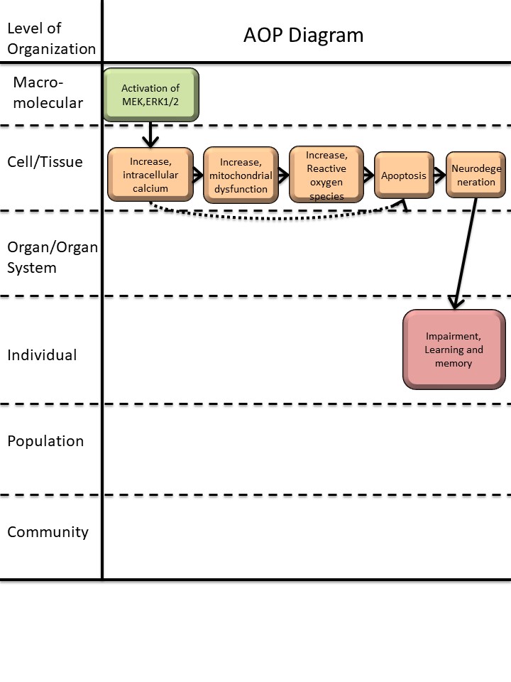 This AOP was developed as part of an Environmental Protection Agency effort to increase the impact of AOPs published in the peer-reviewed literature, but heretofore unrepresented in the AOP-Wiki, by facilitating their entry and update. The originating work for this AOP was Katherine von Stackelberg & Elizabeth Guzy & Tian Chu & Birgit Claus Henn, 2015. Exposure to Mixtures of Metals and Neurodevelopmental Outcomes: A Multidisciplinary Review Using an Adverse Outcome Pathway Framework, Risk Analysis, John Wiley & Sons, vol. 35(6), pages 971-1016, June. This publication, and the work cited within, were used create and support this AOP and its respective KE and KER pages.