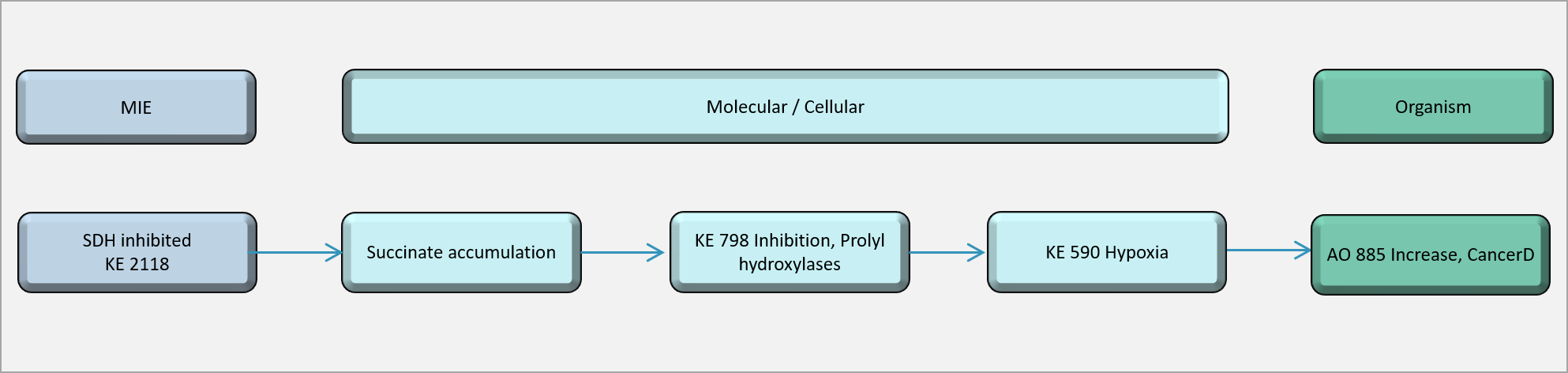 Our hypothesis is that, if SDHi fungicides are able to alter SDH activity in humans, the consequences of SDHi exposure on cellular and mitochondrial functions may resemble those observed in SDH-mutated tumors and SDH-deficient cells. We assume that the development of an AOP deciphering the different steps leading to cancer following a genetically-SDH inactivation could help to propose the exploration of relevant key events and adverse effects upon chronic exposure to SDHi fungicides.