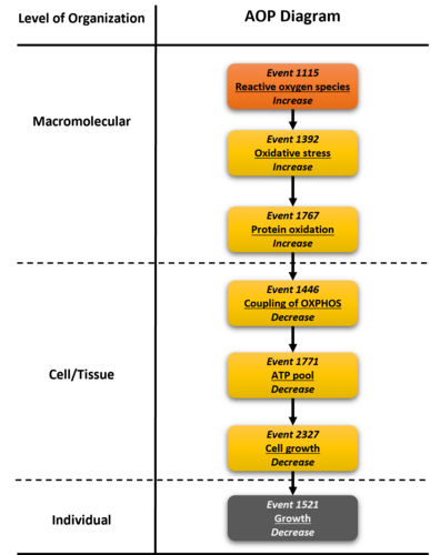 A graphical representation of the AOP.This graphic should list all KEs in sequence, including the MIE (if known) and AO, and the pair-wise relationships (links or KERs) between those KEs.