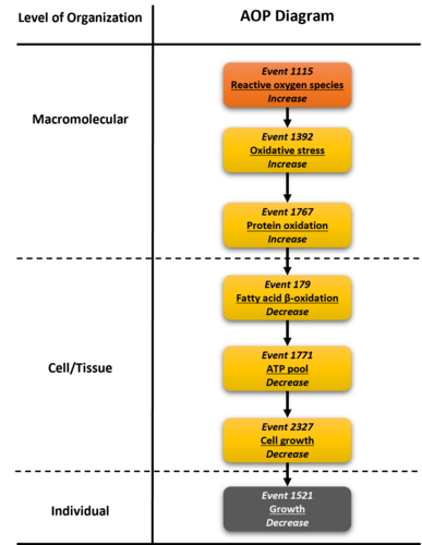 A graphical representation of the AOP.This graphic should list all KEs in sequence, including the MIE (if known) and AO, and the pair-wise relationships (links or KERs) between those KEs.
